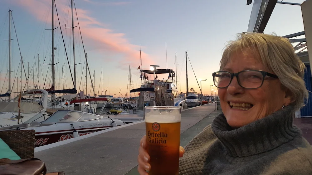 Efter at have slæbt mig afsted i 14 dage, sprang jeg ud af sengen den femtende dag og var mig selv igen. Jeg kunne løbe og danse igen. Det kom bag på mig, at jeg var blevet så udmattet. Nu går det bedre. Jeg sover 5 timer i træk så godt som hver nat. Parkinsonlægen har foreslået mig at være på forhånd med aflastningspauser, så derfor prøver jeg nu at tage en uge ud med ca. 2 en halv måneds mellemrum, for så er det også lettere for Leif. Lige som jeg ville i gang med at organisere dette, fik jeg en mail fra en gammel veninde: "Kom og besøg mig, jeg passer hus i Andalusien, og du kan bo her gratis." Jeg svarede: "Ja, jeg kommer 27/2-8/3!" Det gjorde mig frisk og glad at være i Grønland, så jeg bedre kan klare mit nuværende liv på en ordentlig måde. Nu kan I hjælpe mig igen, så jeg kan lave kalender til Leif.