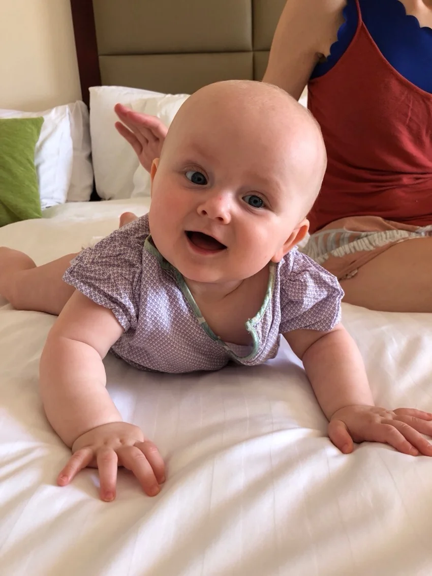 Fanny spiser is på altanen, dagen før vi kører på tur:
