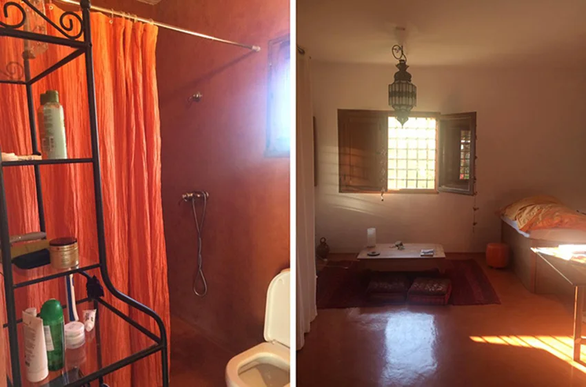 Huset havde mørkorange betongulv, og badeværelset var mørkorange på gulv, loft og vægge med lysende orange badeforhæng. Samme lysende orange var sengetøjet, jeg lå i, og der var insektnet for alle vinduer og skodder, som jeg lukkede hver aften, når jeg gik i seng. Der var helt mørkt, til jeg vågnede (15 timer efter) og slog skodderne fra, så solen kunne komme til.