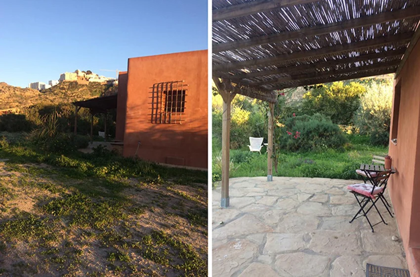 Jeg boede i et lille gæstehus, og det var indrettet inspireret af Indien. Damen, der ejer stedet er yogalærer og tager hver vinter til Indien. Min veninde, Kristiane Kjær, passede stedet, og hun fandt mig på Facebook og inviterede mig ned at bo gratis i Mojácar 400 km fra Malaga. Den invitation fik jeg lige netop, da jeg havde besluttet mig for (med opfordring fra Parkinson sygeplejerskerne) at tilrettelægge de 5 ugers aflastning (som jeg har ret til) med ca 2 1/2 måneds mellemrum, så jeg ikke bliver så udmattet.