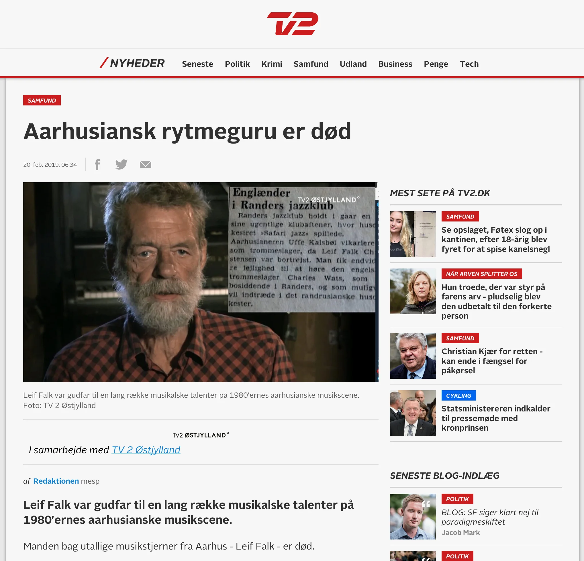 TV2 ØSTJYLLAND, D. 19. FEBRUAR, 2019: